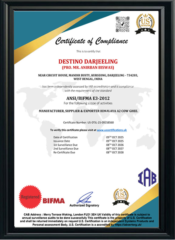 At Destino Darjeeling World, we take pride in crafting pure, traditional A2 Cow and Yak Ghee from the serene Himalayan region. Our commitment to authenticity, quality, and natural purity makes us a trusted choice for health-conscious individuals and businesses across India and beyond.